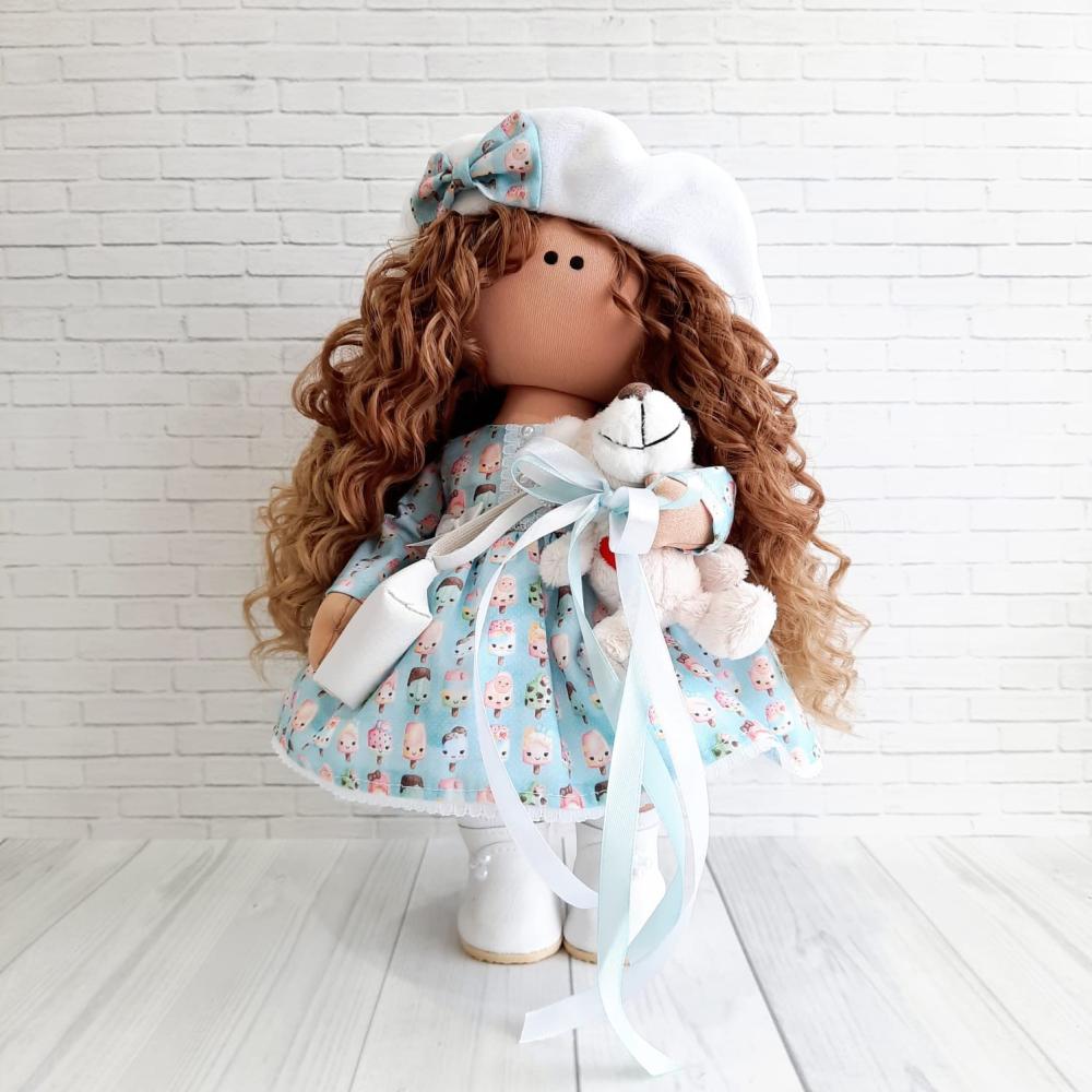 تستلم الدمية بتغليف مرتب ملحق معها قطعة حلوى ورسالة من الدمية لصديقتها /ها الجديد/ة. جاهزة للاهداء.