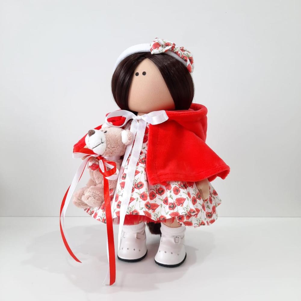 تستلم الدمية بتغليف مرتب ملحق معها قطعة حلوى ورسالة من الدمية لصديقتها /ها الجديد/ة. جاهزة للاهداء.
